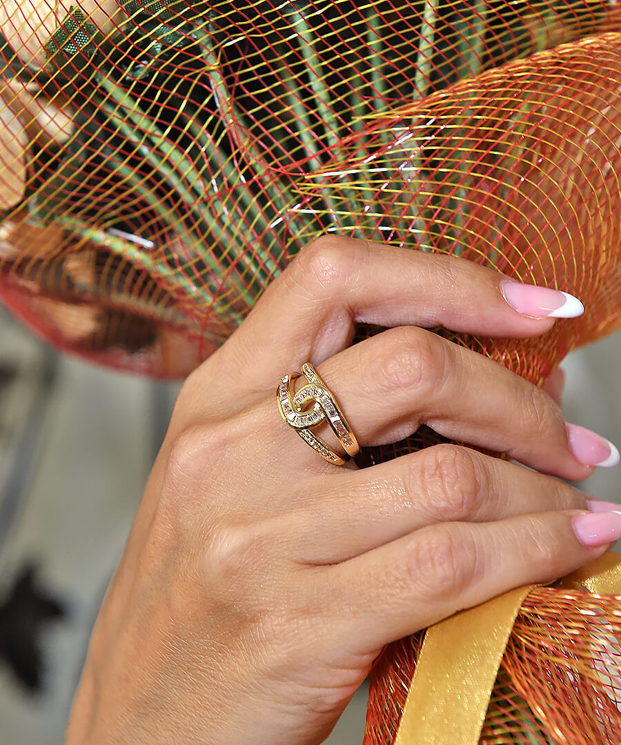 Δαχτυλίδι ρυθμιζόμενο από ατσάλι με κίτρινο επιχρύσωμα πλεκτό με λευκές πέτρες. Ένα ιδιαίτερο δαχτυλίδι για βραδινές και όχι μόνο εμφανίσεις.
