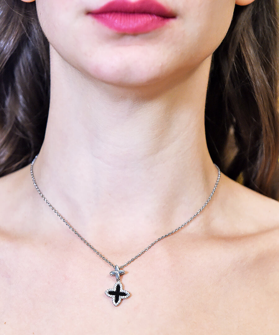 Κολιέ από ατσάλι ασημί σε σειρά σταυρών. Το κούμπωμα είναι ρυθμιζόμενο. Για να είστε all day και all night in fashion.