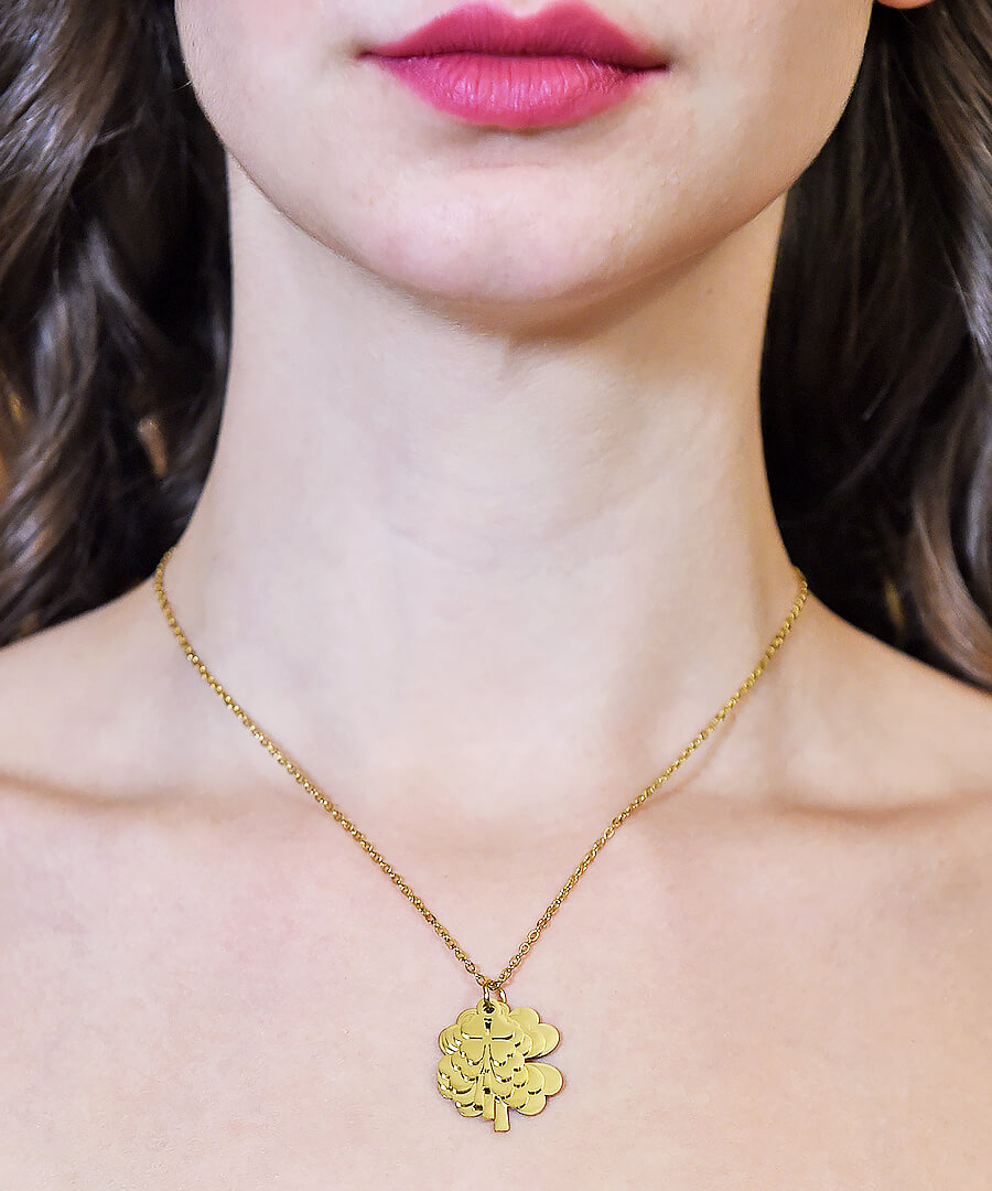 Κολιέ από ατσάλι με κίτρινο επιχρύσωμα σχέδιο τριφύλλι. Το κούμπωμα είναι ρυθμιζόμενο. Για να είστε πάντα in style.