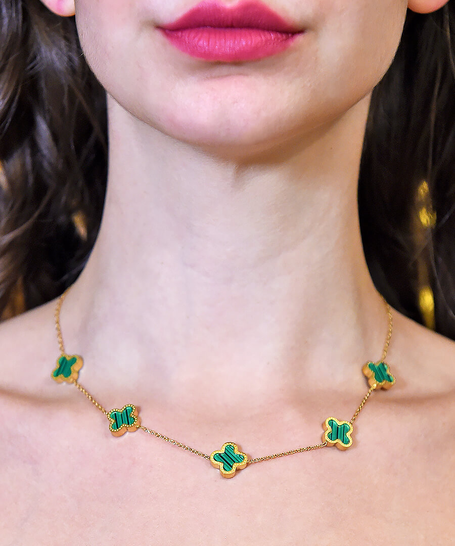 Κολιέ από ατσάλι με κίτρινο επιχρύσωμα τριφύλλια. Το κούμπωμα είναι ρυθμιζόμενο. Πρωτοτυπήστε με αυτό το ιδιαίτερα εντυπωσιακό κολιέ και κερδίστε τις εντυπώσεις…