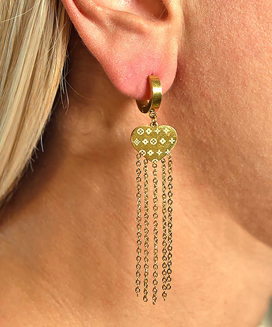Σκουλαρίκια από ατσάλι με κίτρινο επιχρύσωμα καρδούλες κρεμαστές . Διάλεξε αυτά τα ρομαντικά κρεμαστά σκουλαρίκια που τραβούν τα βλέμματα.