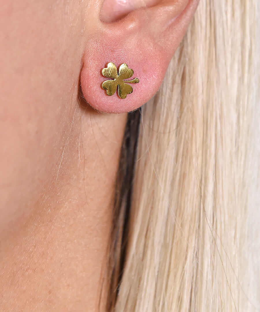 Σκουλαρίκια από ατσάλι με κίτρινο επιχρύσωμα τριφύλλια κουμπωτά . Σκουλαρίκια που αναδεικνύουν την ομορφιά σου σε κάθε σας κίνηση.