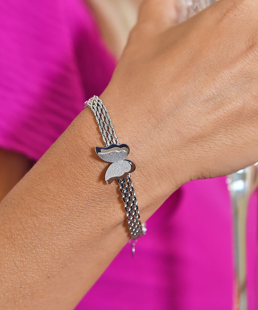 Βραχιόλι μπρασελέ από ατσάλι ασημί πεταλούδα. Αναδείξτε την προσωπικότητά σας με αυτό το υπέροχο βραχιόλι που προσφέρει στυλ και κομψότητα σε κάθε εμφάνισή σας. Aγοράστε το σήμερα και κλέψτε τις εντυπώσεις!