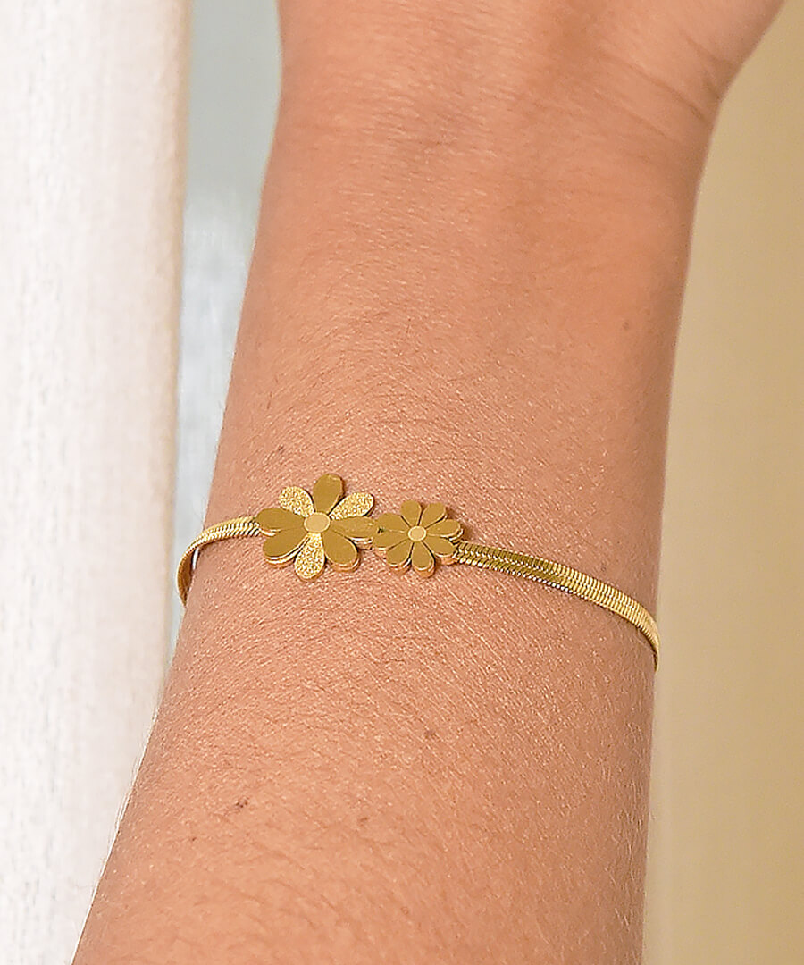 Βραχιόλι μπρασελέ από ατσάλι με κίτρινο επιχρύσωμα με μαργαρίτες. Αναδείξτε την προσωπικότητά σας με αυτό το υπέροχο βραχιόλι που προσφέρει στυλ και κομψότητα σε κάθε εμφάνισή σας. Aγοράστε το σήμερα και κλέψτε τις εντυπώσεις!
