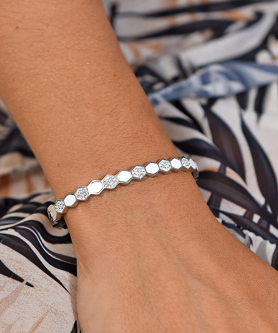Βραχιόλι μπρασελέ από ατσάλι ασημί ρόμβοι. Προσθέστε λάμψη στο στυλ σας. Ιδανικό για να εκφράσετε την αγάπη σας προς αγαπημένα πρόσωπα. Κάντε την ημέρα τους ξεχωριστή με αυτό το εντυπωσιακό δώρο.