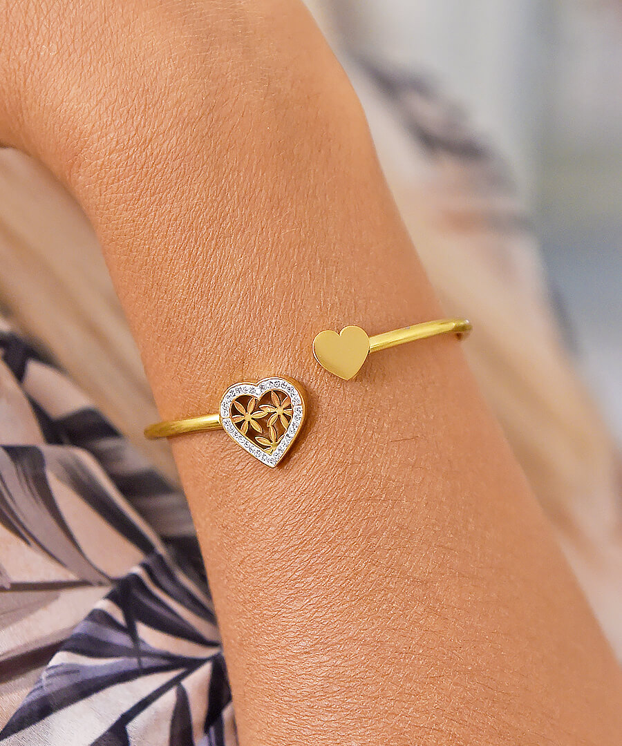 Βραχιόλι μπρασελέ από ατσάλι με κίτρινο επιχρύσωμα καρδιά. Κάντε αυτό το βραχιόλι το τέλειο δώρο για αγαπημένα πρόσωπα. Ιδανικό για γενέθλια, επέτειούς ή απλώς για να δείξετε την αγάπη σας.
