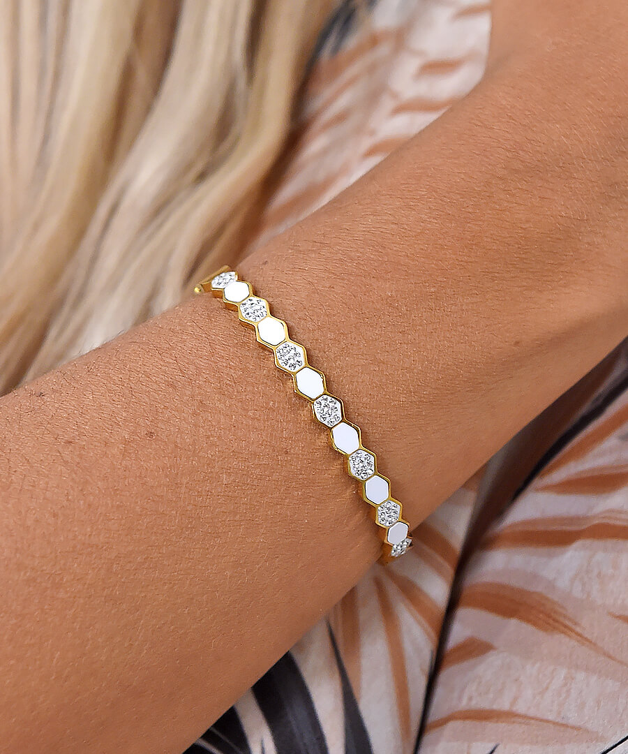 Βραχιόλι μπρασελέ από ατσάλι με κίτρινο επιχρύσωμα ρόμβοι.